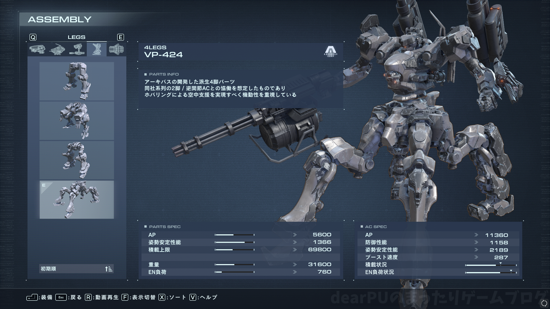 4脚パーツ「VP-424」は壁越えクリア後からショップで購入可能です。