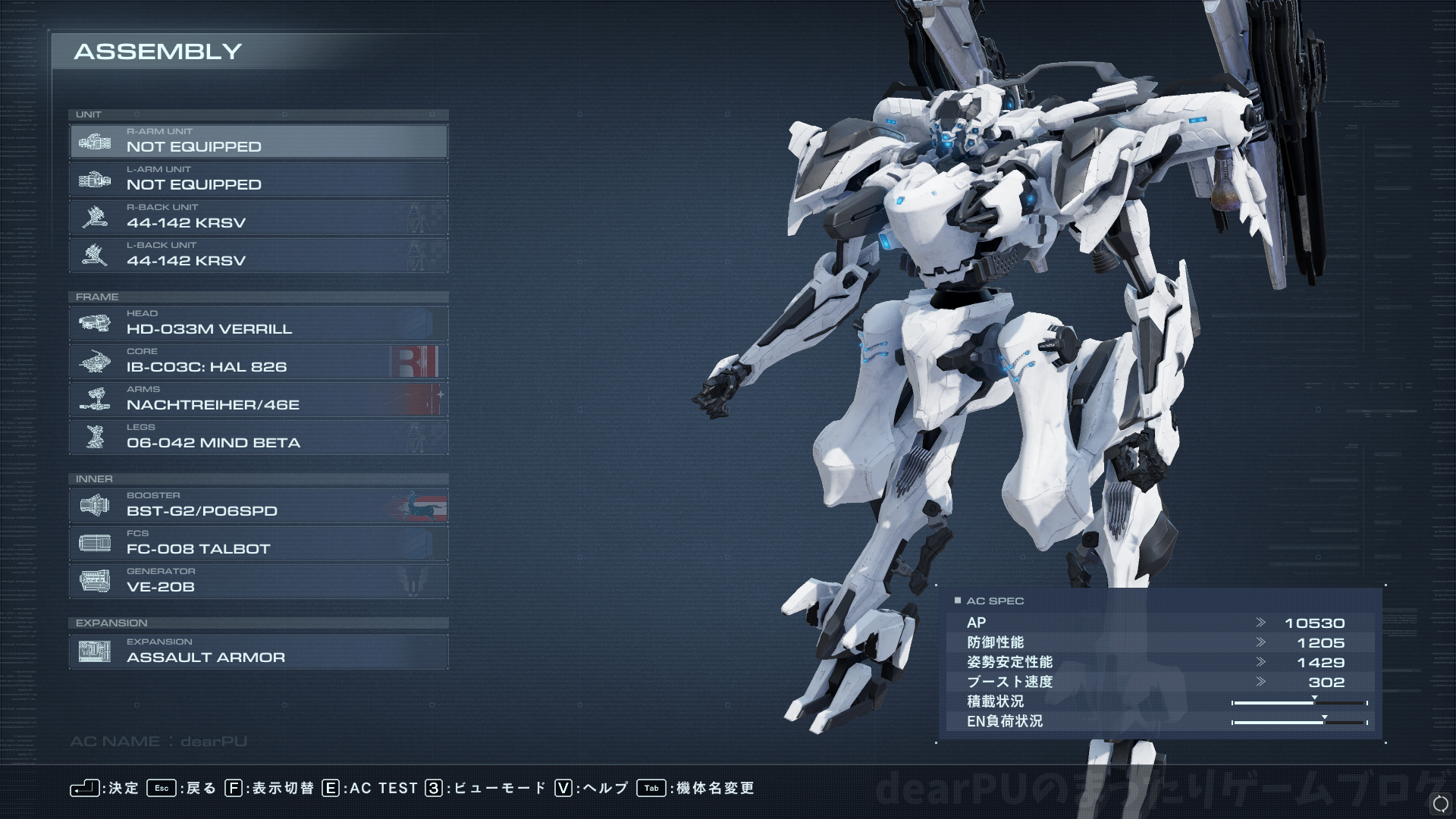 ※他の候補は「IA-C01C: EPHEMERA」のみ(この場合、ブースト関連のスペックは良化し、AP・防御・EN補充遅延が悪化する)