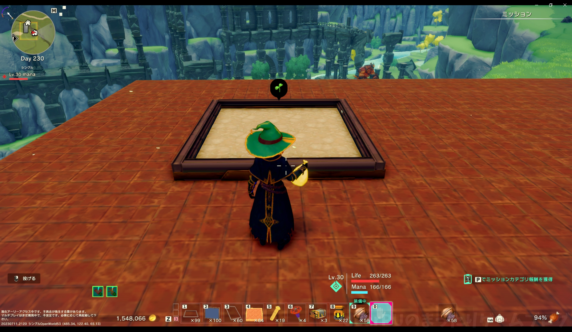 上記の画像では作業しやすいように横幅3マス×奥行3マスを確保しています。