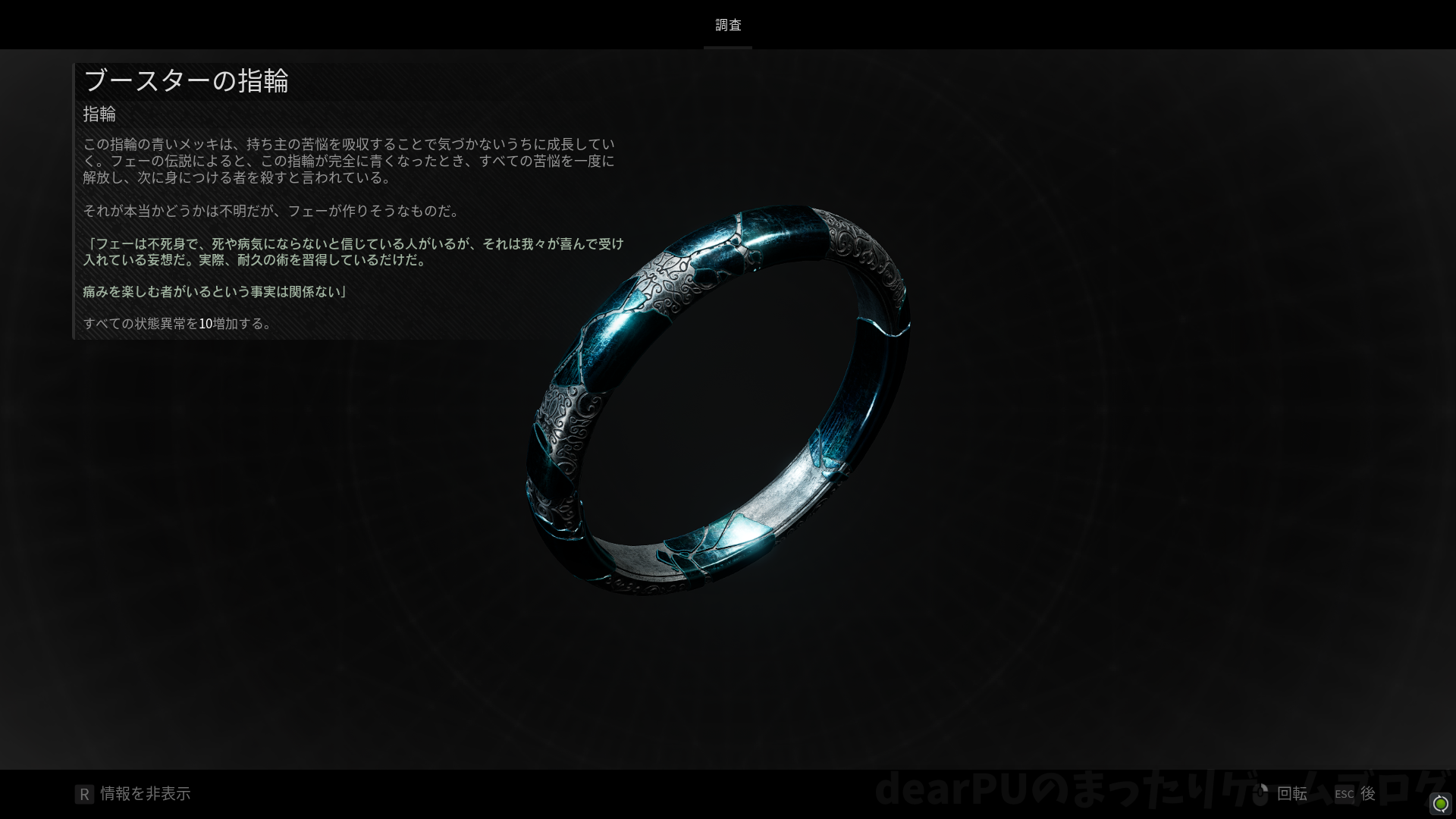 ブースターの指輪は状態異常耐性を10増加させる指輪で、状態異常効果は変化しません。