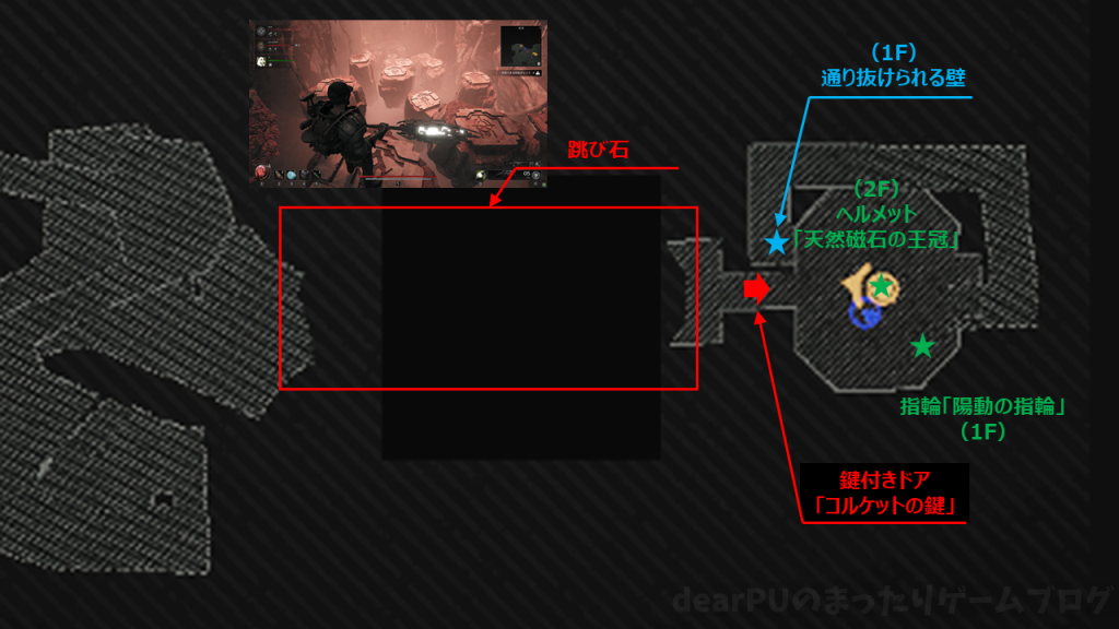 - 跳び石エリアの奥への鍵「コルケットの剃刀」