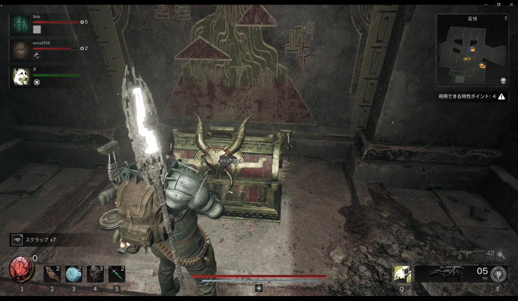 奥のエリアに進むと左右に宝箱がある空間に出ます。