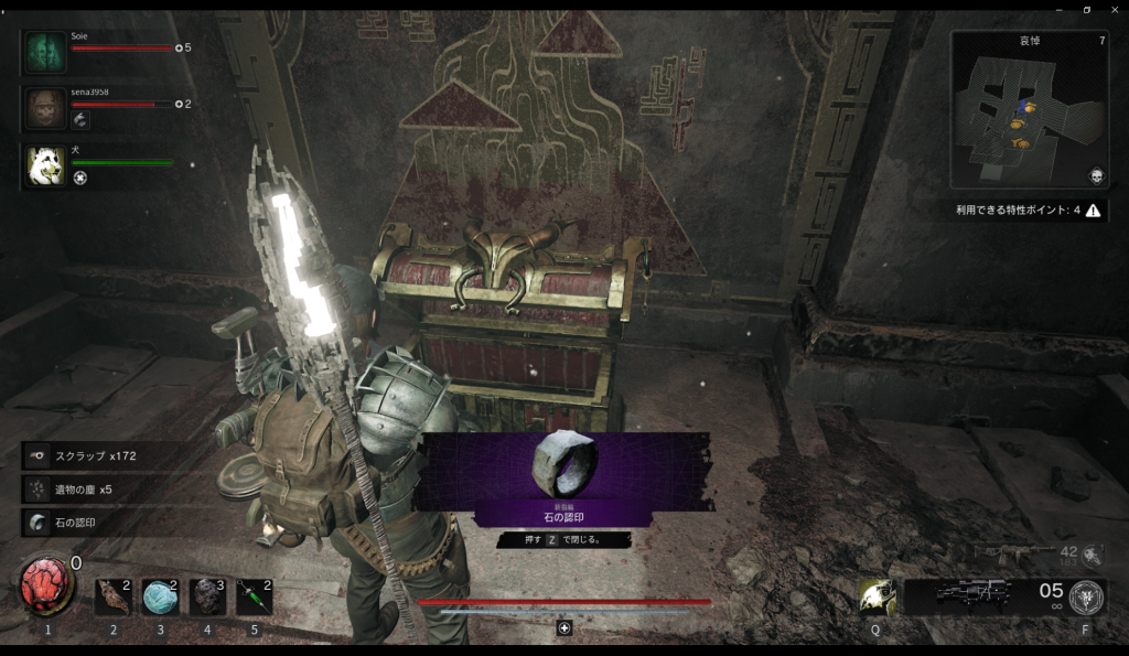 部屋の奥の宝箱から指輪「石の認印」を入手できます。