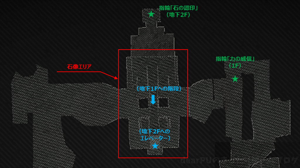 さらにエリアの端(半地下)に手記があり、マークが描かれています。