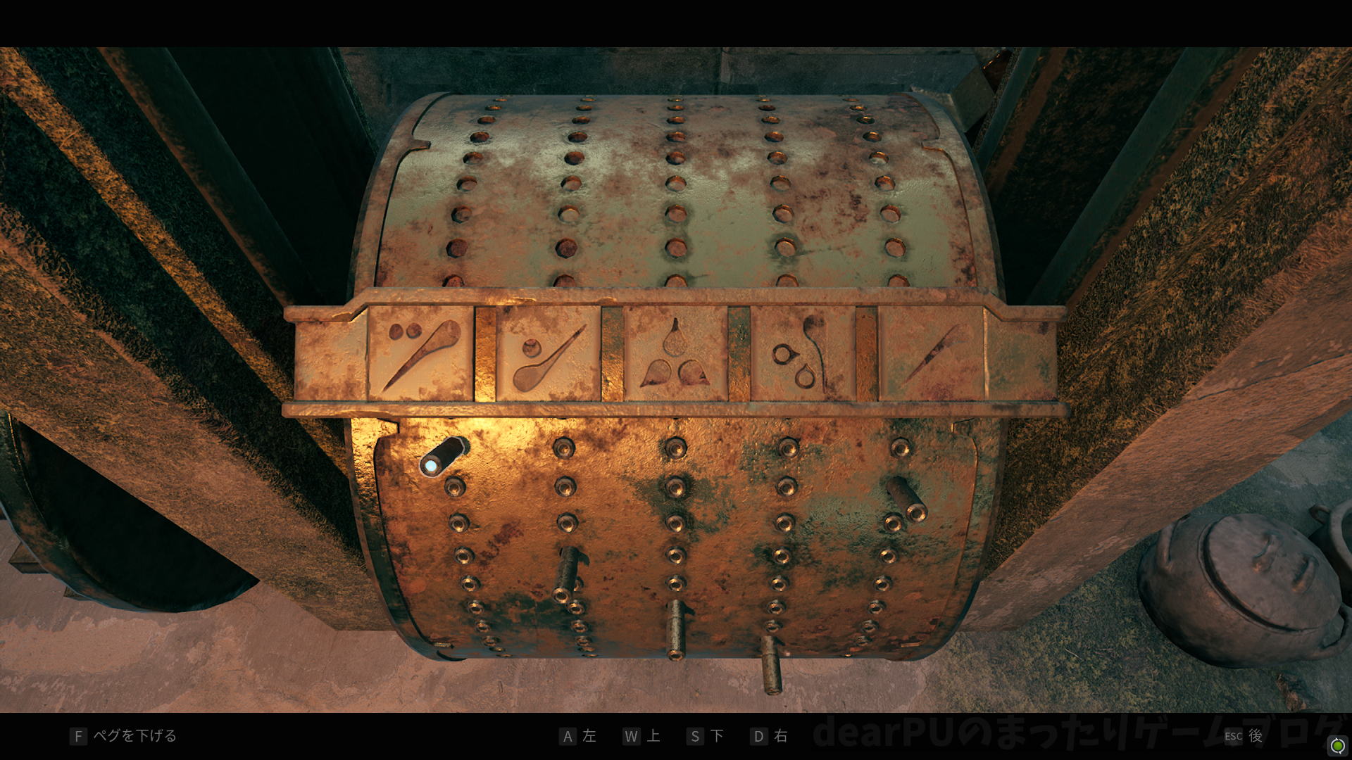 オルゴールギミックを解くためには下記画像の動力装置を動かす必要があり、その動力装置は「禁断の木立」内の別エリア(エリア03)にあります。