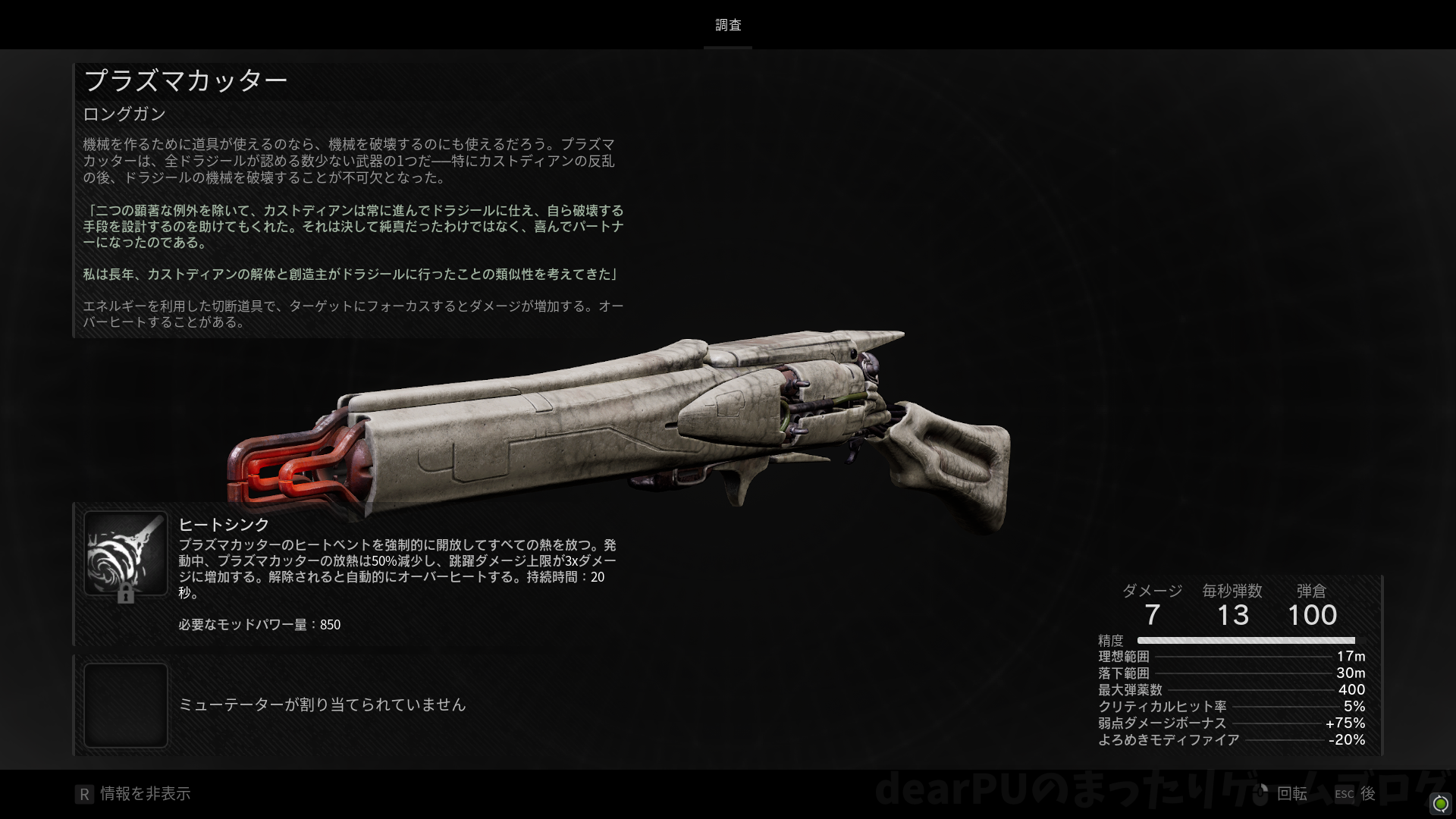 今回の記事ではゲーム終盤まで活躍する最強おすすめロングガン「プラズマカッター」の入手方法と性能についてまとめました。