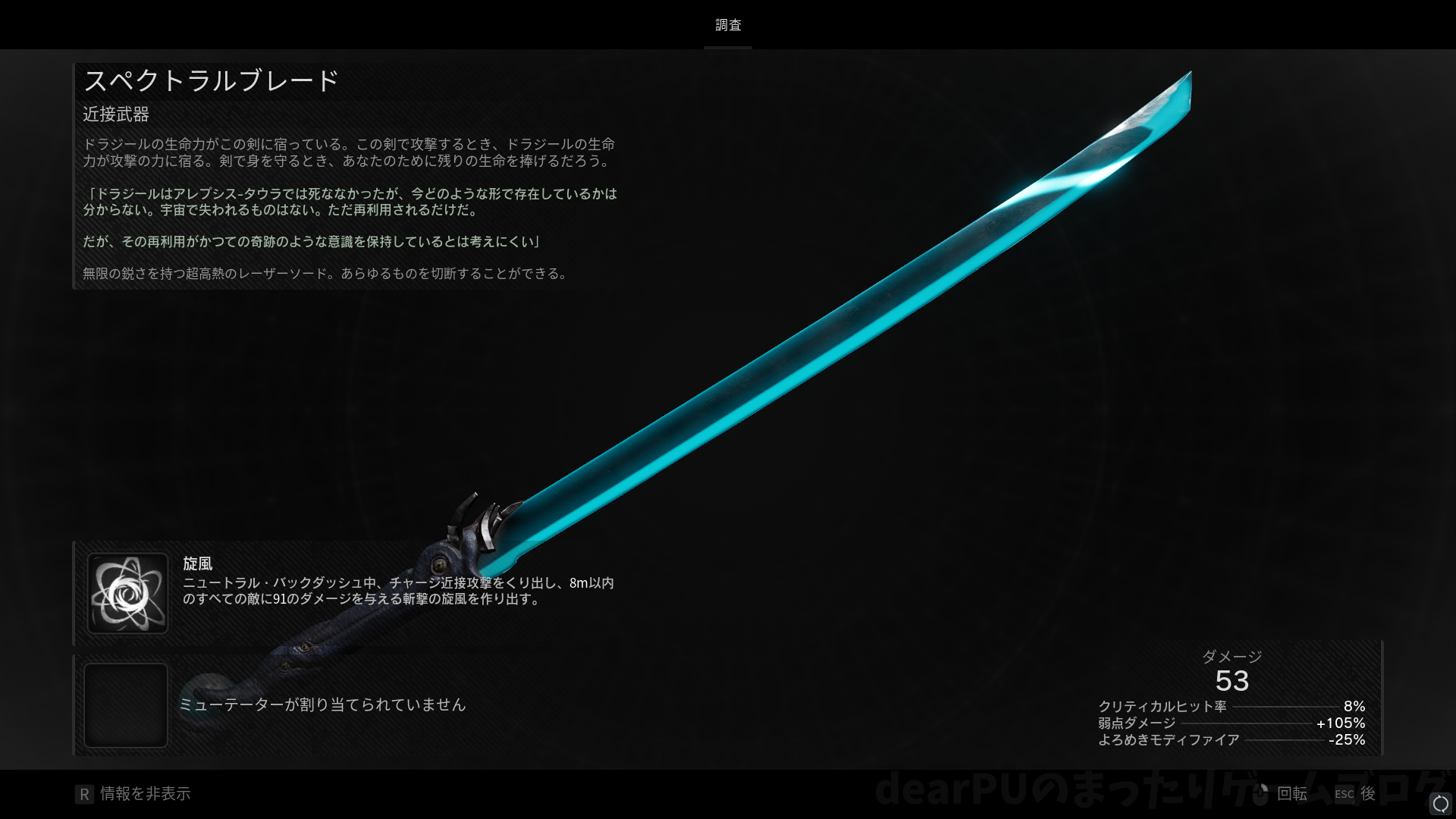 近接武器「スペクトラルブレード」の詳細は画像の通りです。