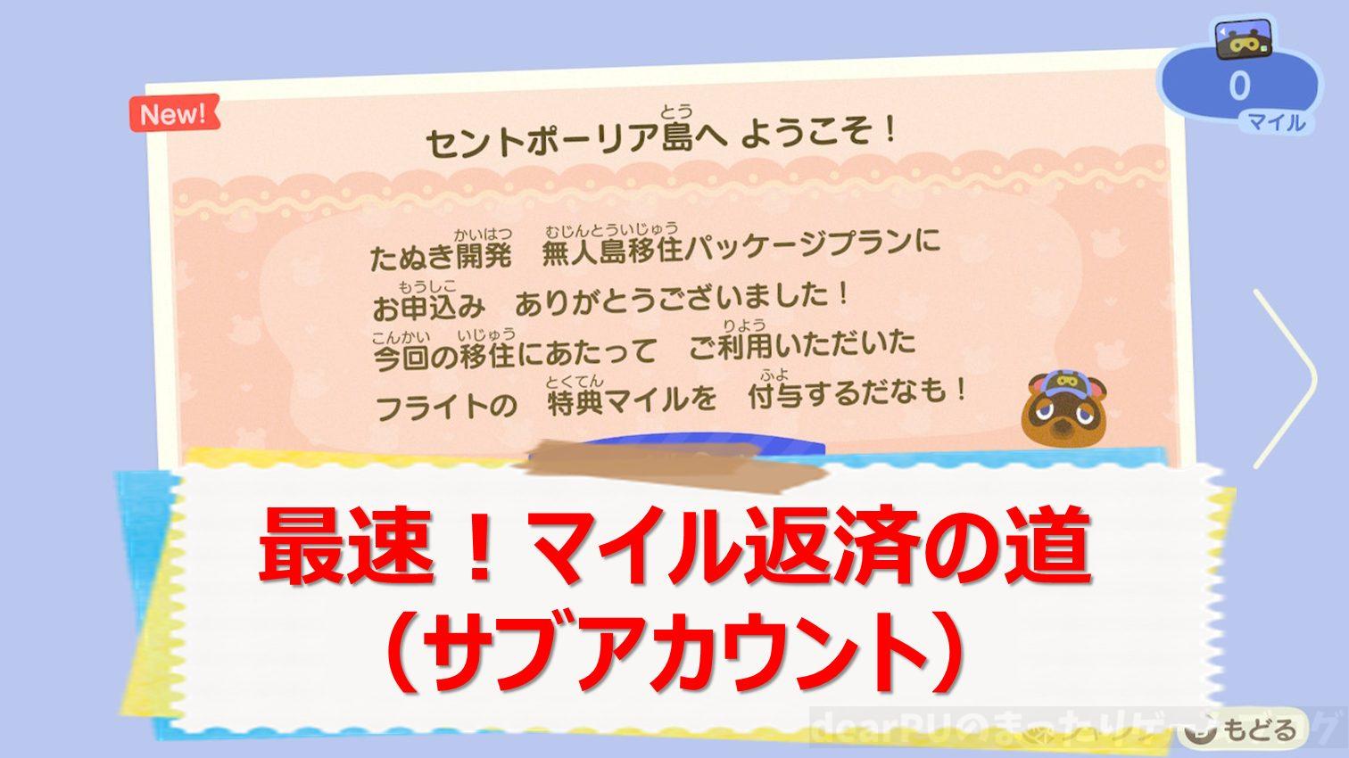 【あつ森】最速!マイル返済の道(サブアカウント)【あつまれどうぶつの森】